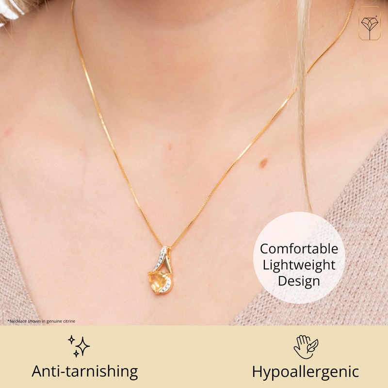 - Pendant necklace features 8mm Citrine stone and diamond accent.