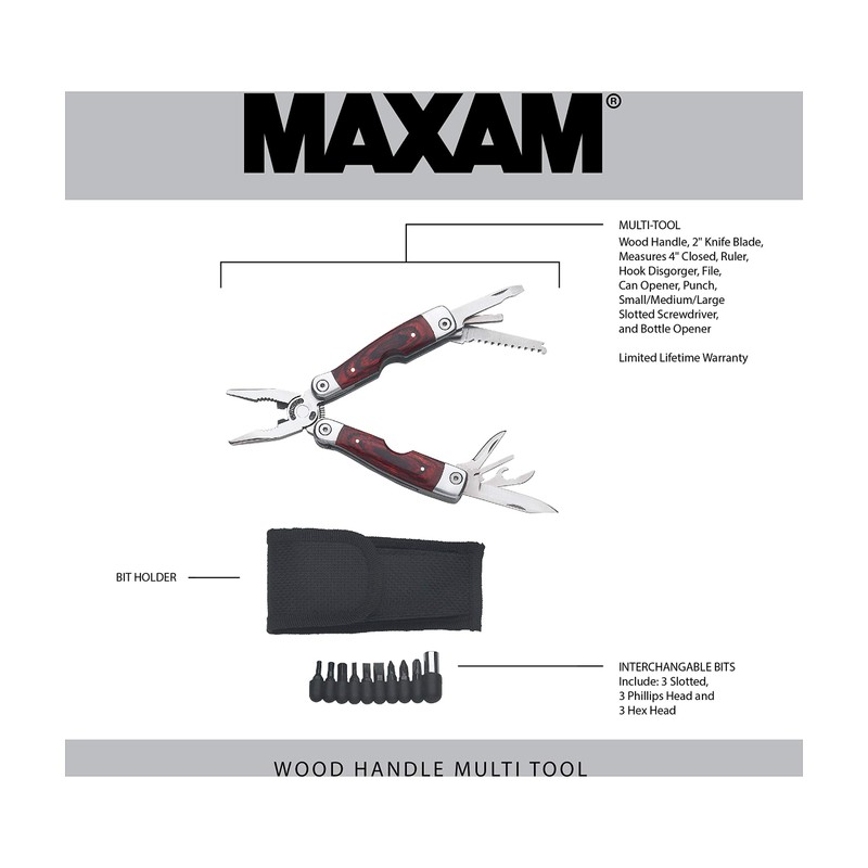 Maxam SKWMT Wood Handle Stainless Steel Multi-Tool