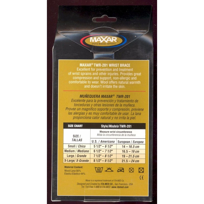 MAXAR NEW! - MAXAR Elastic Wrist Brace MEDIUM (56% Wool/44% Elastic): TWR-201