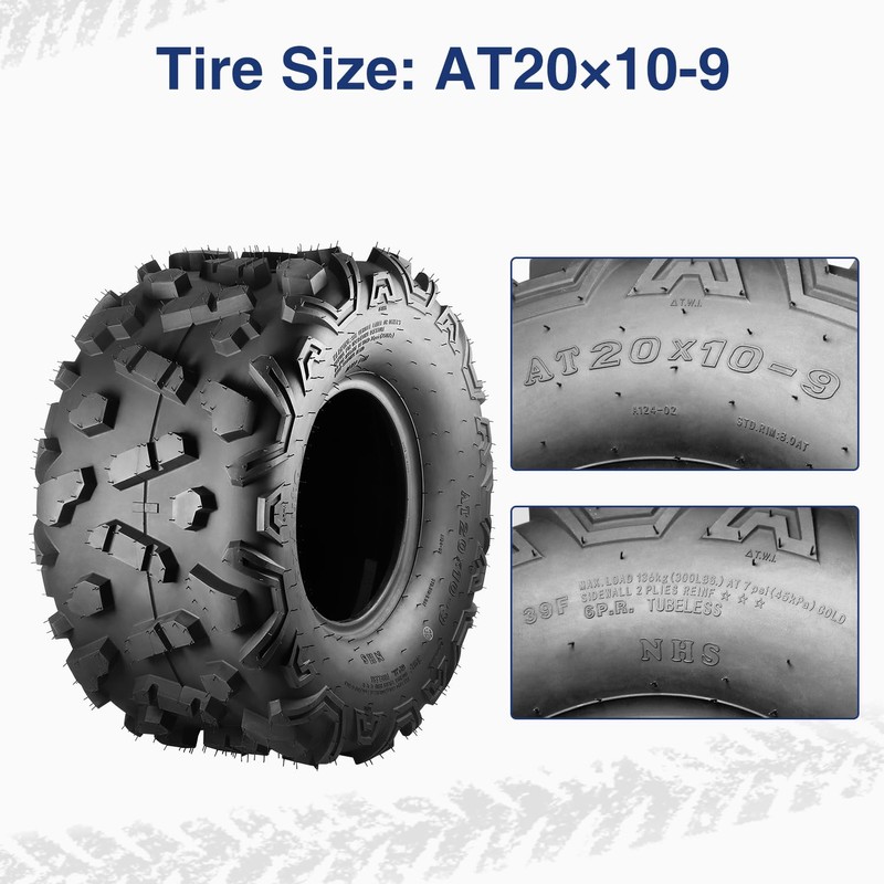 - 【Note】Before making a purchase, we recommend that you double-check if the size(AT20x10-9) matches the tires currently on your vehicle to avoid any unnecessary inconvenience.