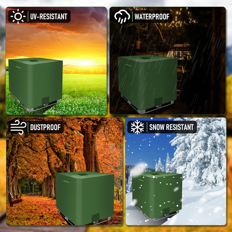 MaxAwe 1000L IBC Tank Cover, Tarpaulin for Water Tank with Velcro and Reflective Strips, 420D Waterproof Protective Tarpaulin Protective Cover, Green IBC Container Cover for IBC Tank Container Rain