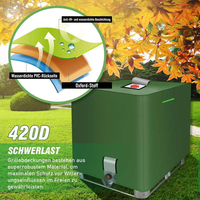 • High quality: MaxAwe IBC protective cover is made of 420D Oxford fabric, which is thicker, wear-resistant and tear-resistant than the 210D material on the market. The inner surface has a silver plated coating, which is waterproof, sun-resistant, UV-resistant and not easy to fade. Double stitched seams provide excellent protection and extend the life of the IBC tank.