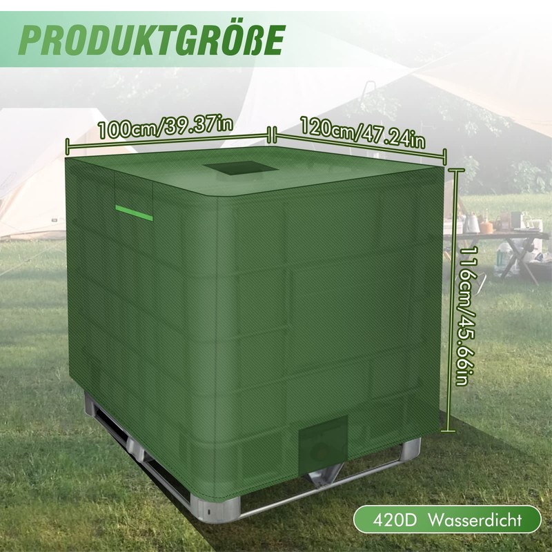 • Suitable for: Our green UV sign measures approx. 120 x 100 x 116 cm / 47.24 x 39.37 x 45.67 inches and fits 1000L IBC tank or rainwater tank.