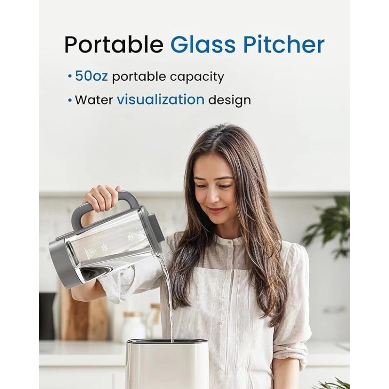Portable Design:This pure water pitcher is compatible with the Waterdrop M1 TrueBoil Reverse Osmosis Water Filter system. The 50oz (1.5L) capacity and portable design allow for convenient access to filtered water in various settings.