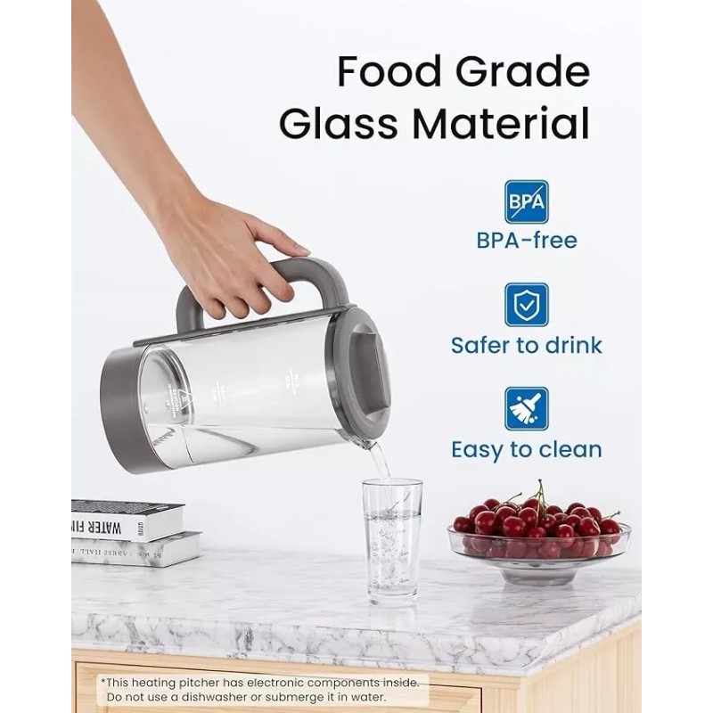 Note: Due to the integrated heating base, refrigeration is not recommended.Food-Safe Construction:Crafted from BPA-free, food-grade glass, the pitcher helps maintain water quality while being simple to clean.