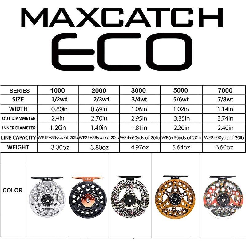 Maxcatch ECO Fly Reel Large Arbor with Diecast Aluminum Body(2/3wt 3/4wt 5/6wt 7/8wt)(ECO Fly Reel,3/4 Weight)