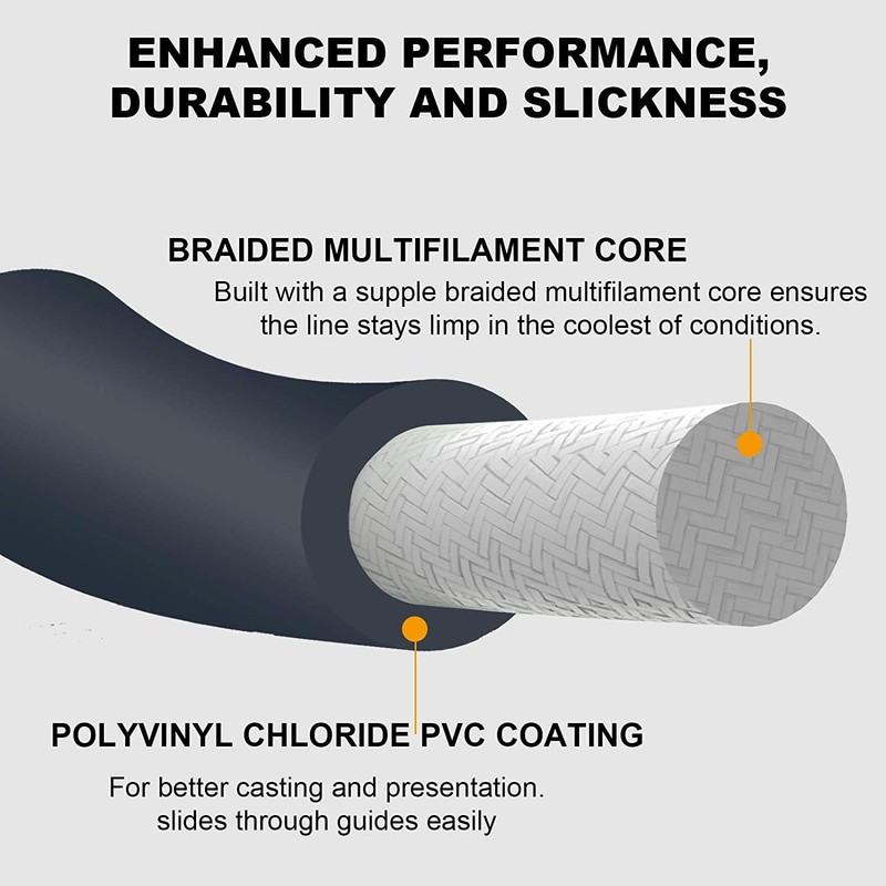 - Polyvinyl chloride PVC Coating -For better casting and presentation. Slides through guides easily