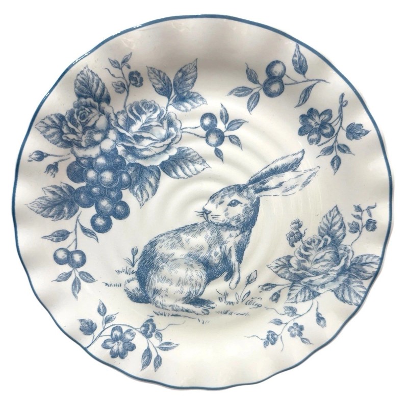 Maxcera Blue Bunny Rabbit Toile Salad Plates Set Of 4 NEW