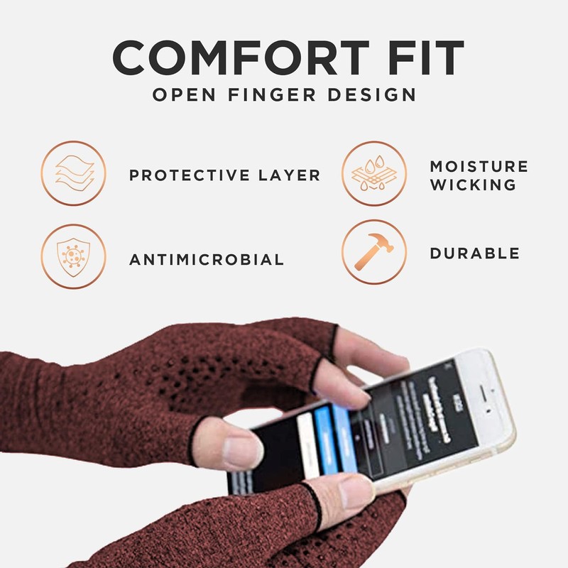 - FINGER-FREE DESIGN: Arthritis gloves for men and women, using fingerless design, Perform everyday tasks like using phone, typing, cooking, and more without interference. The opening is set at optimal length to provide a perfect balance between beneficial compression support and finger/thumb mobility