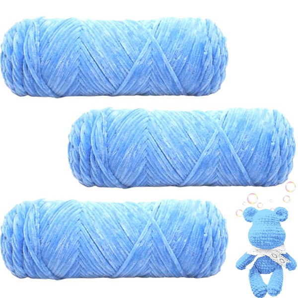 Maxee 300 g (3 x 100 g) Velvet Baby Wool, Velvet Wool Chenille Yarn, Cuddly Soft Chenille Yarn, Fluffy Soft Plush Wool, Crochet Yarn Wool for Knitting and Crocheting (Sky Blue 3)