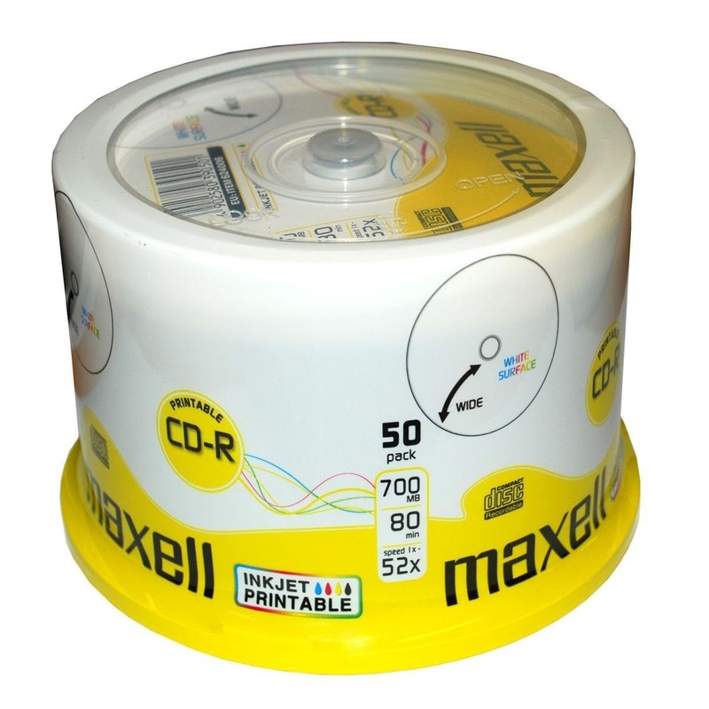 Maxell CD-R 52x White Full Face Inkjet Printable Surface - 50 Discs in Spindle Pack