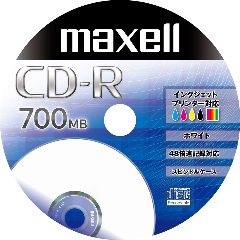 Maxell CDR700S.PNW.50SPZ for Data (For Single Recording) CD-R 700 MB, 48x Compatible, Inkjet Printer Compatible, White (Non-Wide Printing), 50 Sheets, Spindle Case Included