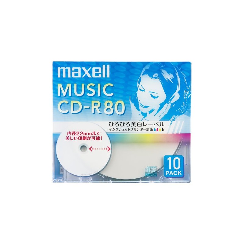 maxell CDRA80WP.10S CD-R for Music, 80 Minutes, White (Wide Printing) Compatible with Inkjet Printers, 10 Sheets (5 mm) Case Included