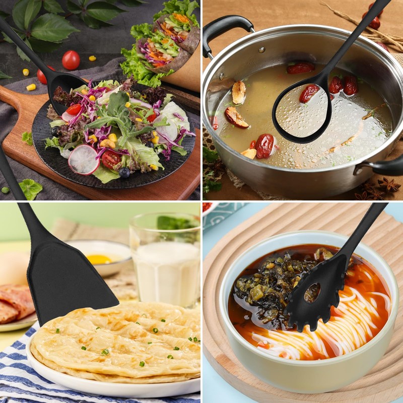 - 【Materialsicherheit】küchenhelfer aus essbarem Silikon, um zu verhindern, dass antihaftbeschichtete Töpfe zerkratzt oder verbeult werden. Sie müssen sich keine Sorgen machen, dass der Silikonteil beim Kochen in das Essen schmilzt.