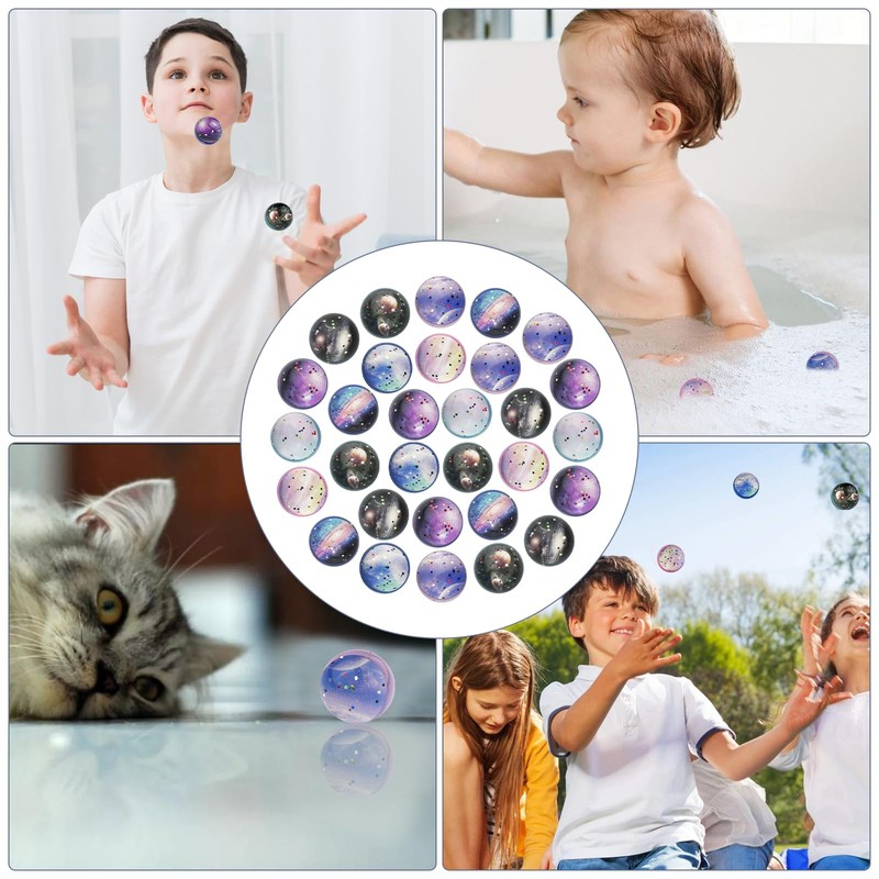 Maxentico Pack of 30 Bouncy Balls for Children, Bouncy Balls, Planets Toy Gift, 30 mm Bouncy Balls, Glitter Rubber Ball, Bouncy Balls, Space Theme, Give Aways Party Bags, Children's Birthday Set for
