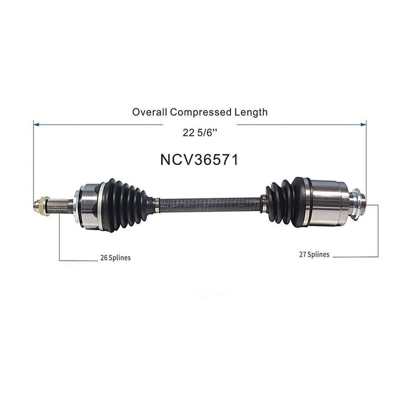 - 👍【OE Number】 NCV36571 (Front Right); ① Location: Front Passenger Side; ② Compressed Length: 22.83inch (Right); ③ ABS Tone Ring Included: NO; ④ Inboard Spline Quantity: 27; ⑤ Outboard Spline Quantity: 26