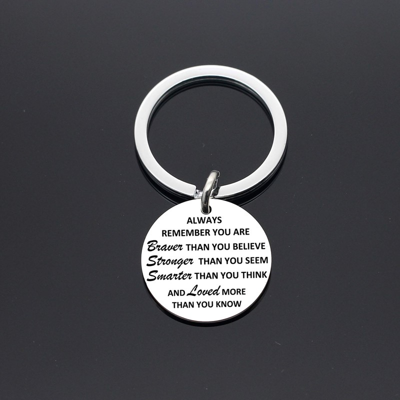 Maxforever Inspirational Gifts, Always Remember You Are Braver, Stronger, Smarter Than You Think Inspirational Quote Pendant Keychain Keyring, for Son Daughter Aunt Niece Family & Friends