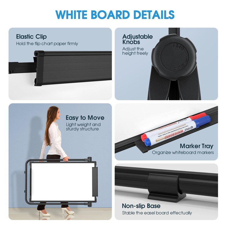 - Height & Angle Adjustable Design: Our double-sided dry erase board features adjustable height and angle, catering to diverse usage scenarios. Perfect for kids, students, and adults at home, school, office, or even as a standout display at the entrance of a retail store. It is a multi-purpose product that cannot be overlooked.