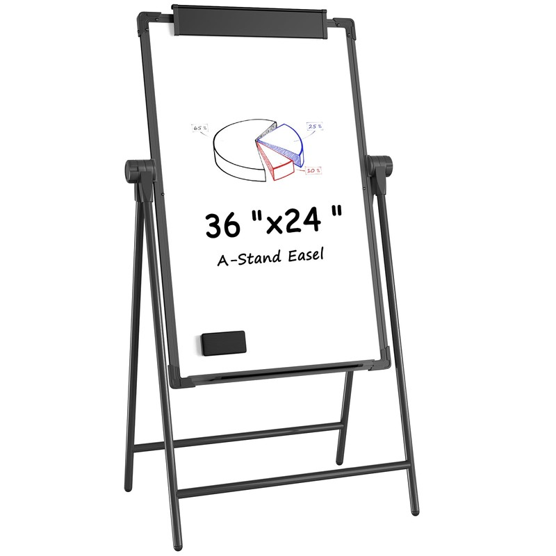 MaxGear Large White Board with Stands, 36" x 24" Black Aluminum Alloy Frame Big Whiteboard Double Sided A-Style Stand Easel Dry Erase Board Height Adjustable Flip Chart for School,Classroom,Office