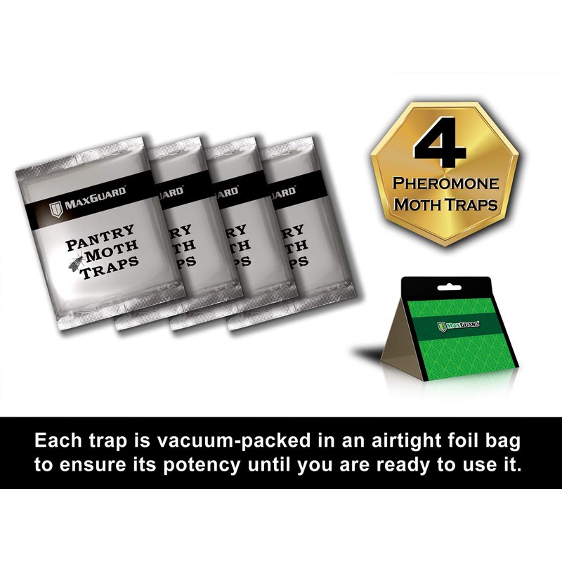 MaxGuard Pantry Moth Traps (4 Traps Trial Pack) Extra Strength Pheromones | Non-Toxic Sticky Glue Trap for Food and Cupboard Moths in Your Kitchen | Trap and Kill Seed Grain Flour Meal Moths |