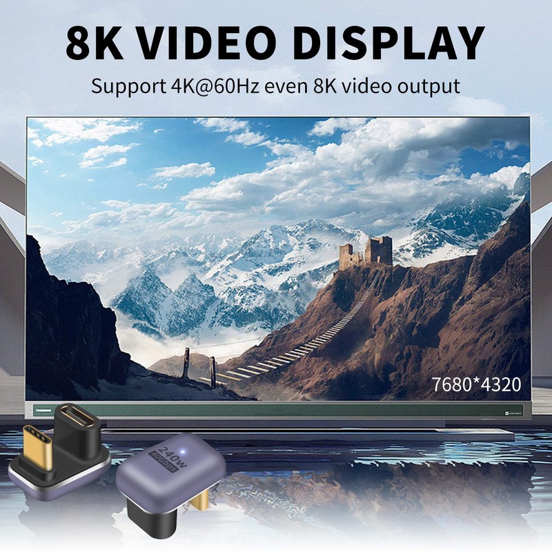 - 【180 Degree USB C Adapter】 : with 8K Video Display. support 4K@60Hz even 8K video output. You can enjoy charging, audio, video and transfer data on the trip, at home, and in the office.