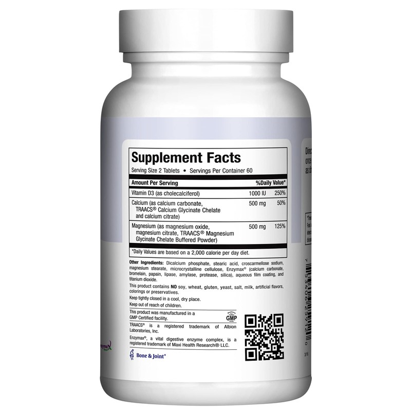 Maxi Health 500 mg Calcium Supplement with Vitamin D3 (1000 IU) and Magnesium (500 mg) - Bone, Teeth and Joint Support for Men and Women - 120 Tablets - One to One Cal-Max