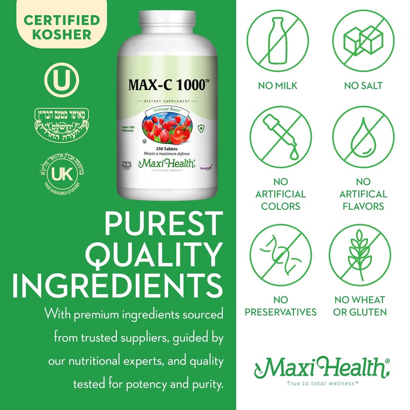 Maxi-Health Max Vitamin C -"1000mg" - with Bioflavonoids - 250 Tablets - Kosher