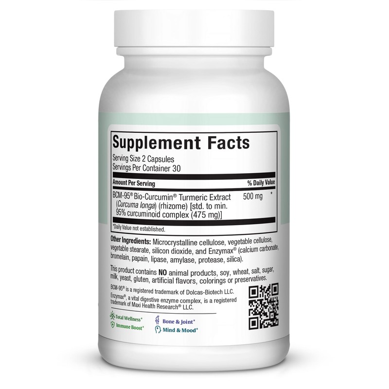 For better health and all 60 and 120 Capsules Gluten Free Benefits Maxi Turmeric BCM-95 is here! You keep hearing all the buzz about curcumin, turmeric's active ingredient. Now you can get the best available with kosher supervision! The best source of turmeric today is BCM-95, the world's only 100% turmeric extract with the ultimate bioactivity. It's all about combining curcumin with Ar-turmerone. The ar-turmerone is the essential oils of turmeric, not a synthetic substitute. BCM-95 is 100% pure extract of turmeric extract standardized to: Curcumin Demethoxy Curcumin Bis-Demethoxy Curcumin Essential Oils of turmeric rhizome Essential oils used in BCM-95 are extracted using double steam distillation. Contents of essential oils are 7-9% with ar-tumerone,α-tumerone and β-tumerone around 50%. Some of the other Essential Oils that are present in BCM-95: Ar-curcumene α-curcumene Zingeberene β-sesuiphellandrine β-atlantone Germacrone What this means to you is that you now get the benefits of turmeric without taking uncomfortably high dosages, and that's good news. Get the best, get Maxi Turmeric BCM-95! Learn more about Turmeric and BCM95 Click here Take two (2) to four (4) Maxicaps daily, or as directed. Other Ingredients: Vegetable cellulose,microcrystalline cellulose, vegetable stearate, silicon dioxide, and Enzymax (calcium carbonate, bromelain, papain, lipase, amylase, protease, silica). This product contains NO animal products, soy, wheat, salt, sugar, milk, yeast, gluten, artificial flavors, colorings or preservatives. BCM-95 is a registered trademark of Dolcas-Biotech LLC. Enzymax, a vital digestive enzyme complex, is a registered trademark of Maxi Health Research LLC. Store tightly closed in a cool, dry place. Keep out of reach of children. Available packaged in the following units: 60 and 120 Capsules UPC Codes: 753406340606 (60 CAPS) 753406340125 (120 CAPS) These statements have not been evaluated by the Food and Drug Administration. This product is not intended to diagnose, treat, cure, or prevent any diseases. Abbreviations: I.U. : Intrernation Units mg. : miligrams mcg. : micrograms