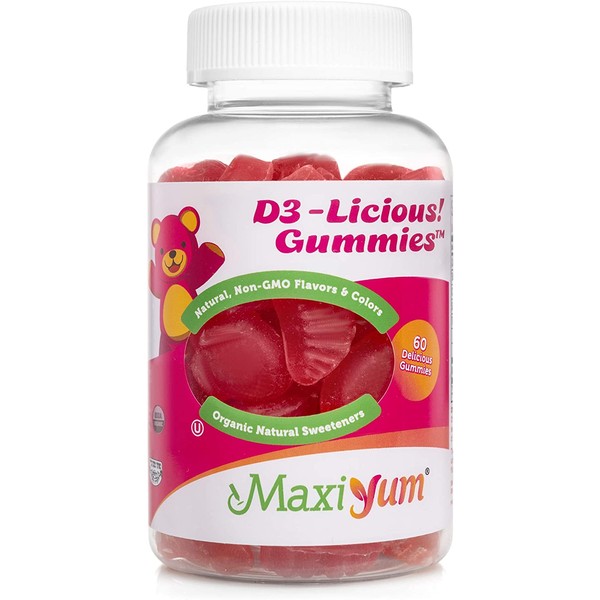 Maxi Health Vitamin D3 1000iU Flavor Supplement for Kids and Adults, Gummies Cherry, 60 Count