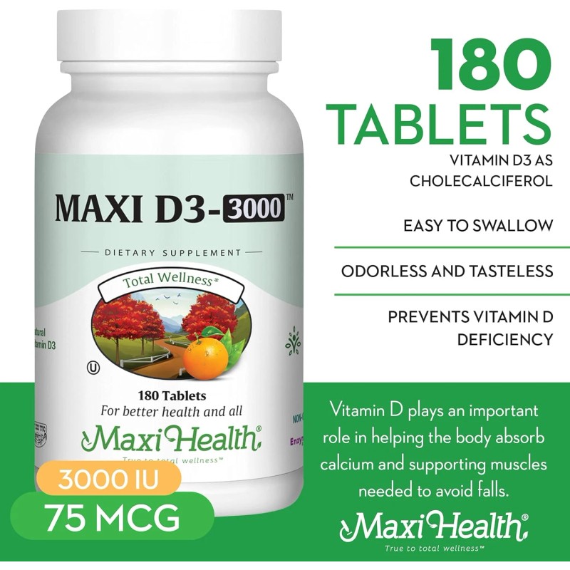 Maxi Health Vitamin D3 3000IU, 75mcg, 180 Tablets, Kosher