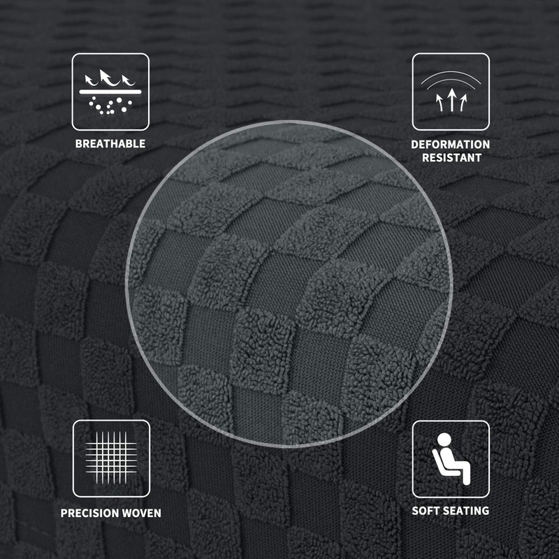 - ELEGANT DESIGN - Crafted from newest jacquard knitted fabric embellished with three-dimensional large checks, the anti-slip ottoman slipcover looks upscale and stylish, provides decorative purpose to your ottomans and living room! Our fabric adopts the most advanced active printing and dyeing technology, so the color is more vivid, no fading, no pilling, and wrinkle free, healthy and skin friendly material is the best choice for families with kids