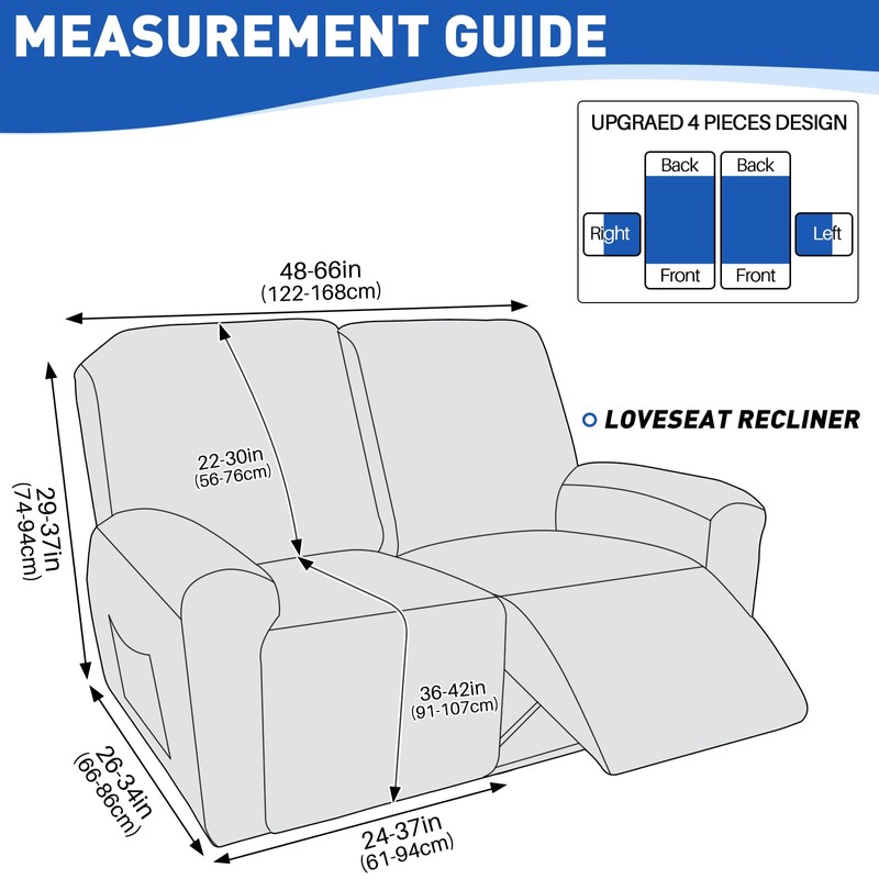 - 【EASY TO INSTALL & CARE】Simply attach the recliner set cover parts to the corresponding parts of the recliner, then tighten and secure the straps, and you'll have a brand new 2 seat recliner couch cover in just 10 minutes!! WASH TIPS: Machine or hand wash in cold water or below 30℃ water. Do not machine wash with the coating facing outwards. Do not bleach or iron. Hang drying is recommended