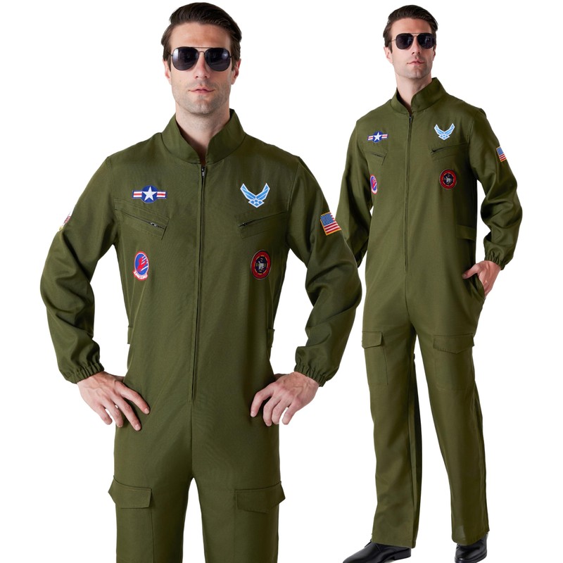 Maxim Party Supplies Men's Air Force Pilot Costume Jumpsuit with Embroidered Patches, Functional Pockets, Realistic Design (X-Large)