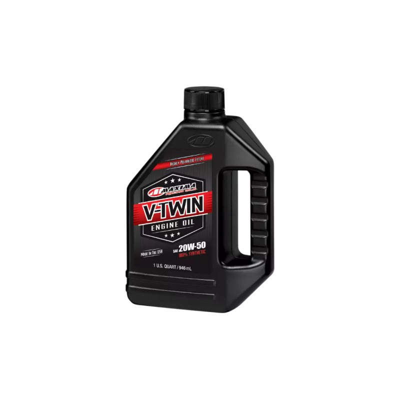 - Maxima V-Twin Full Synthetic is an ester based full synthetic motorcycle oil engineered to lower operating temperatures, reduce wear, increase film strength and offer extended protection