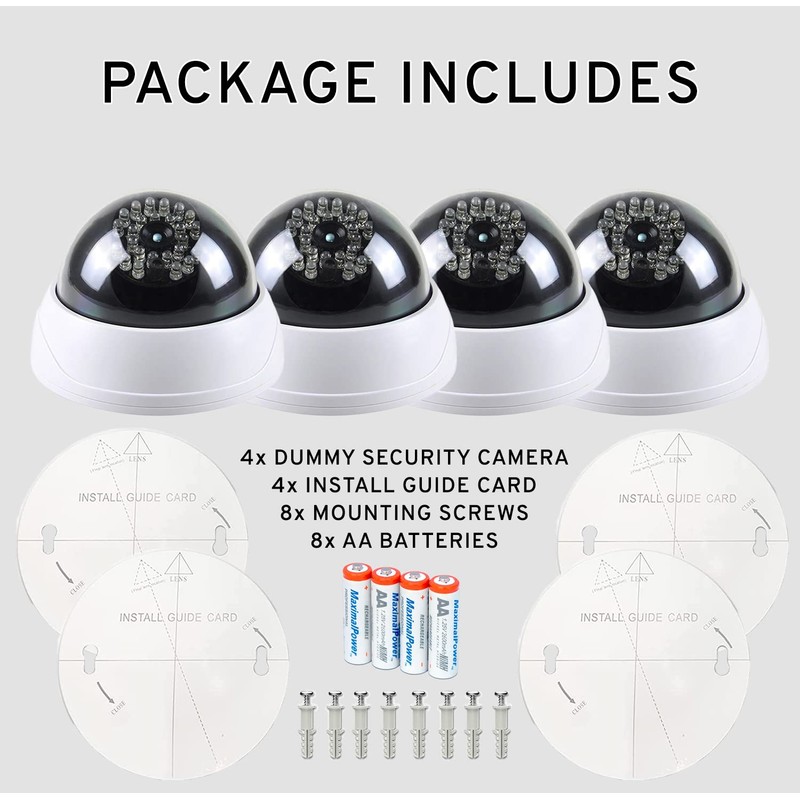 MaximalPower Imitation CCTV Security Dummy Dome Camera with Red LED Light for Home, Shop, Business, etc. (4 Pack & 4PC AA Battery)