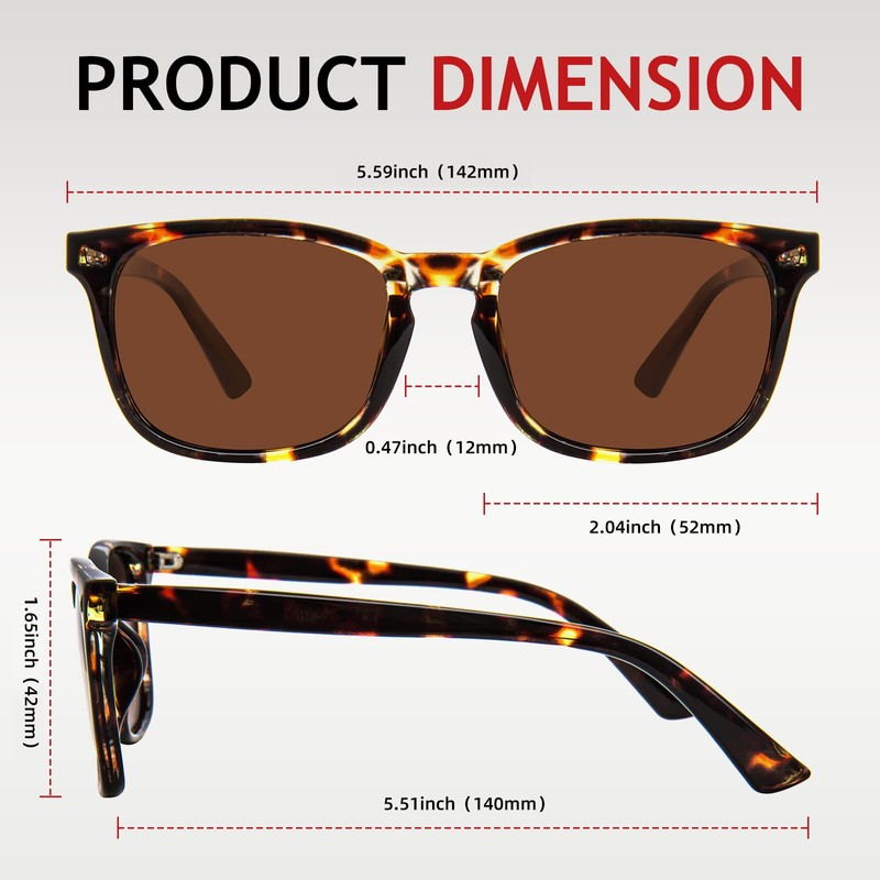 - 【DIMENSION】Frame Front 142mm,Frame Side 140mm,Lens Width 52mm,Lens Height 42mm.