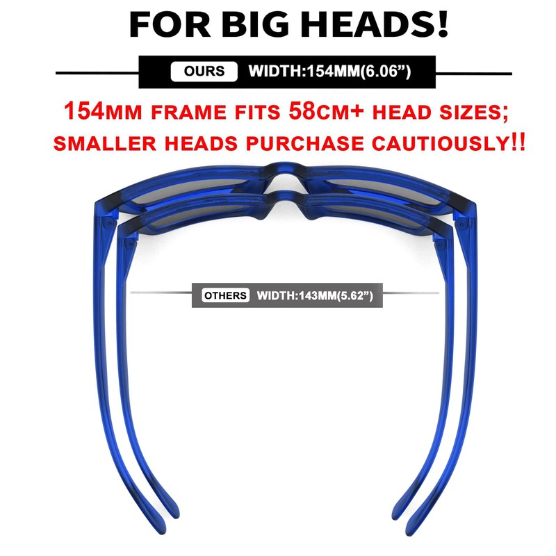 - 【FOR BIG HEADS】This 154mm wide sunglasses frame is ideal for users with a head circumference of 58 cm or more, especially those with larger heads. Customers with a smaller head circumference should purchase with caution.
