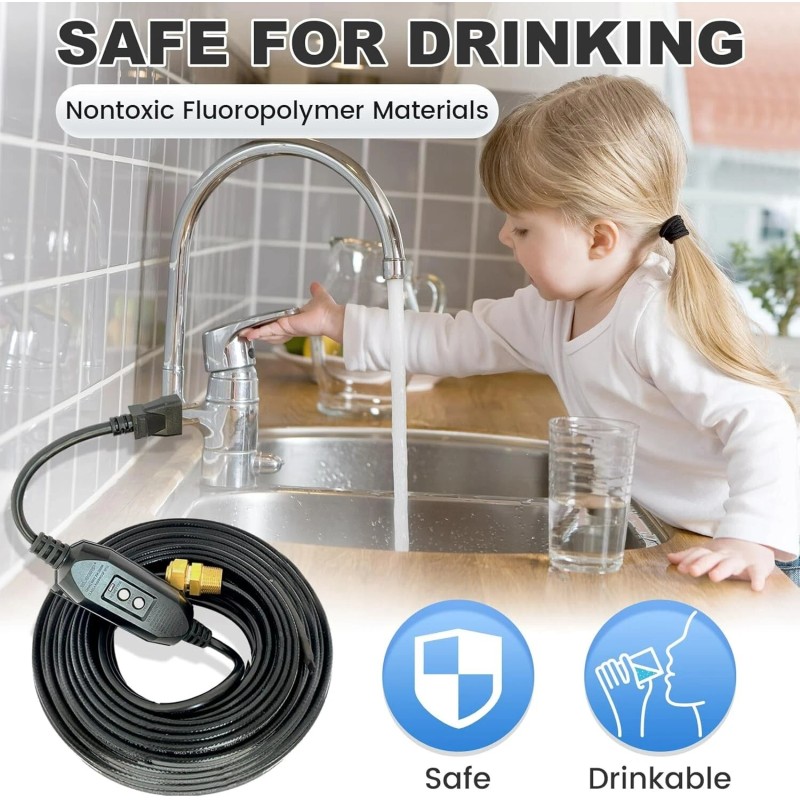 - SAFE DRINKING WATER: The heating cable does in pipe freeze protection to your drinking water pipe. Its high quality fluoropolymer jacket allows the water that passes through to be safe to drink