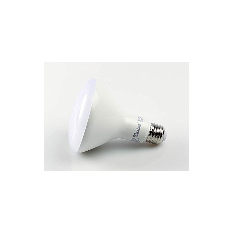 Maxlite dimmable 8 watt 5000K bright white BR30 LED bulb generates as much light as many 65 watt halogen bulbs.