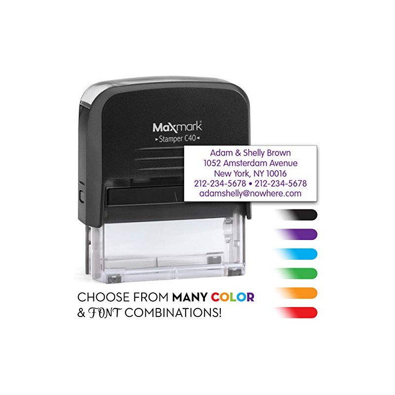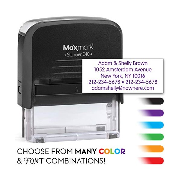 MaxMark Five Line Self Inking Stamp - 7/8" x 2-3/8" - Customize Online, Many Font and Color Choices