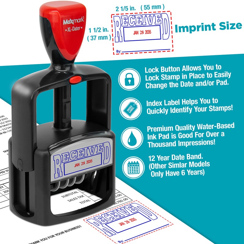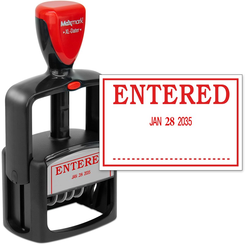 MaxMark Heavy Duty Style 3 Date Stamp with Entered self Inking Stamp - Red Ink