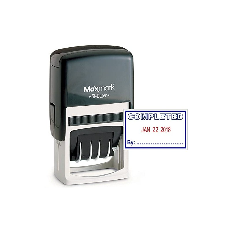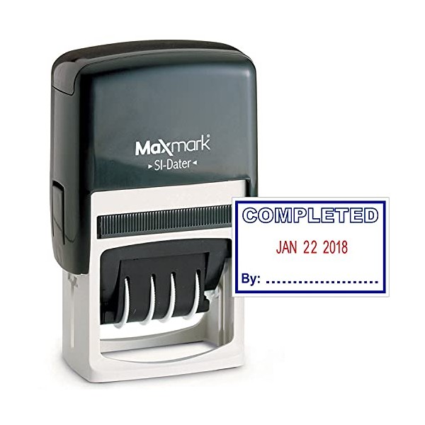 MaxMark Office Date Stamp with Completed Self Inking Date Stamp - Blue/RED Ink