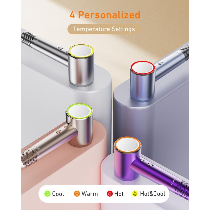 • Intelligent temperature control: Choose from 4 heating modes (hot, warm, cold, and alternating hot and cold) to find the perfect hairstyle for your hair; Prevent thermal damage; Equipped with 2 adjustable airflow speeds and 360 ° rotating magnetic diffusers and nozzles, customize your styling experience