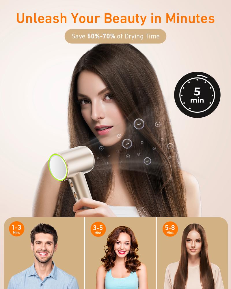 • Hair care: This ion hair dryer injects 200 million negative ions into your hair to ensure it remains soft, silky, and smooth; These ions help to repel moisture, lock in moisture, and give your hair a healthy, natural shine, making it the perfect choice for beautiful hair days