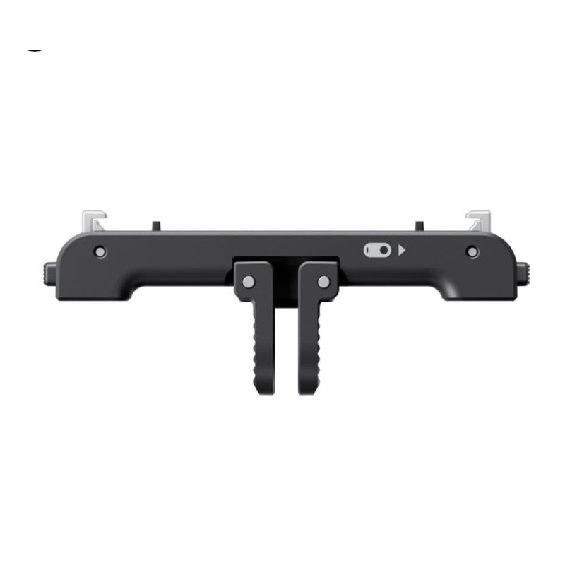 Hold the lock on both sides of the magnetic suction speed disassembly parts, and attach the GO 3 single camera or extension cabin to the quick-disassembly parts, ensuring that the direction of the camera icon matches the direction of the quick-disassembly. Press the GO 3 and the quick attachment to attach to the lock, fully engage the locks on both sides.