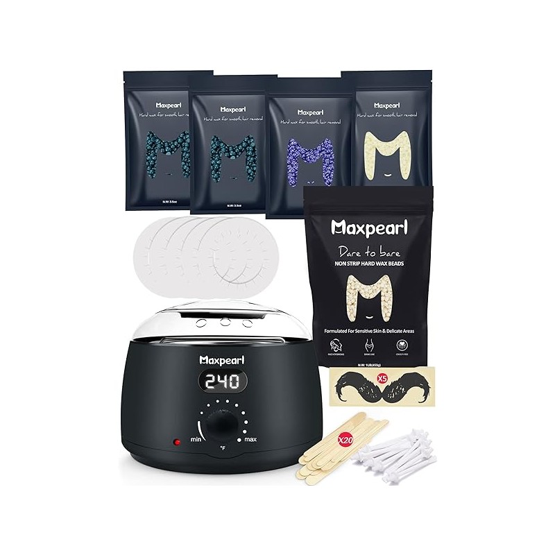 Maxpearl Digital Waxing Kit Pack - Digital Waxing Kit + 1.88LB/853g Wax Beads for Full Body Hair Removal