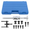 - 【Package Includes】12-piece motorcycle wheel bearing puller tool set incluedes 1x slide hammer with, 1x Two-claw puller, 2x Regulating valve, 8x collets with a complete case