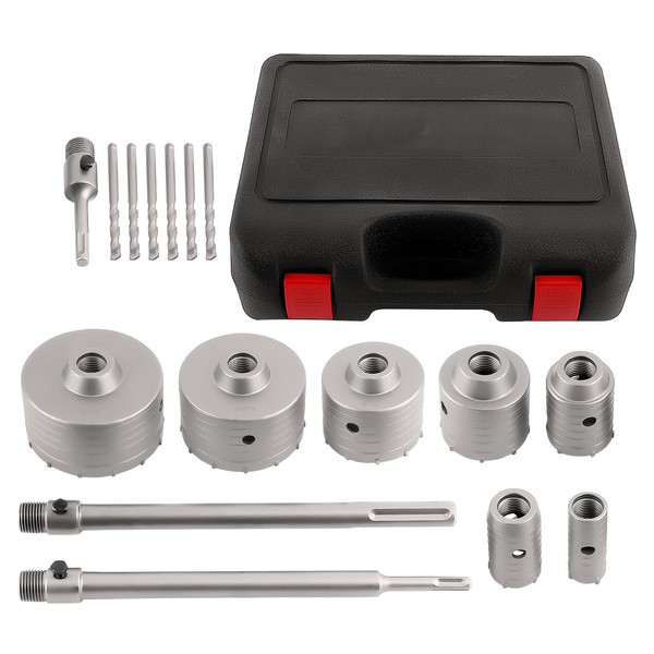 - Wide Use: This Concrete Hole Saw Set is Suitable for multiple materials, hollow brick, cement wall, concrete wall, red brick etc; Can be used to install openings for air conditioning, range hoods, water pipes, water heaters, smoke pipes, sewers, etc