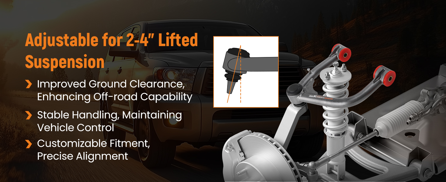- Interchange Part Number: Upper Control Arms, Front Upper Control Arm, Control Arm Kit, Upper Control arm Lift Kit, 2-4" lift, Tubular Control arms, For Toyota Tundra 2007 2008 2009 2010 2011 2012 2013 2014-2022, For Toyota Sequoia 2007-2015 2016 2017 2018 2019 2020 2021 2022