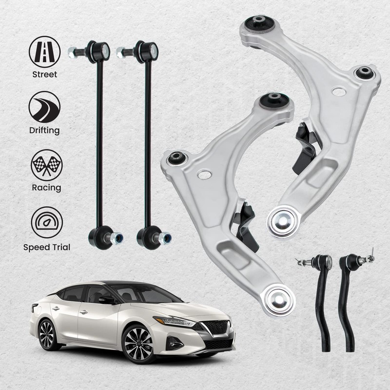 maXpeedingrods 6Pcs Front Suspension Kit for Nissan Maxima 2009-2014, 2 Front Lower Control Arm w/Ball Joints, 2 Sway Bar End Links, 2 Outer Tie Rod End Links